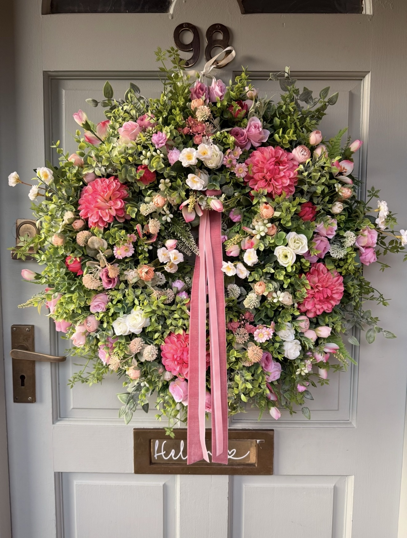 A large faux Spring style wreath, approximately 65cm diameter.