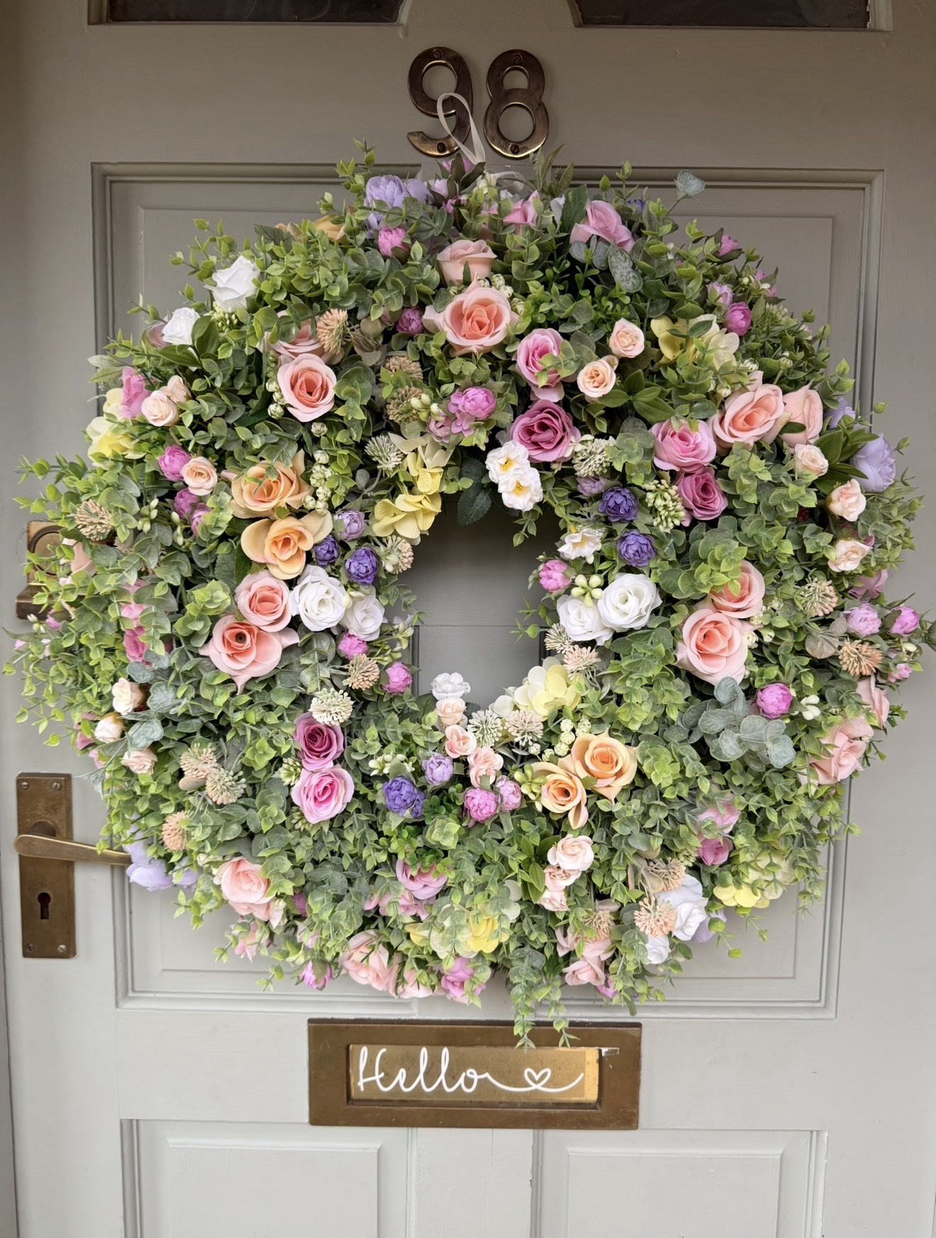 An extra large faux Spring style wreath, approximately 65cm diameter.