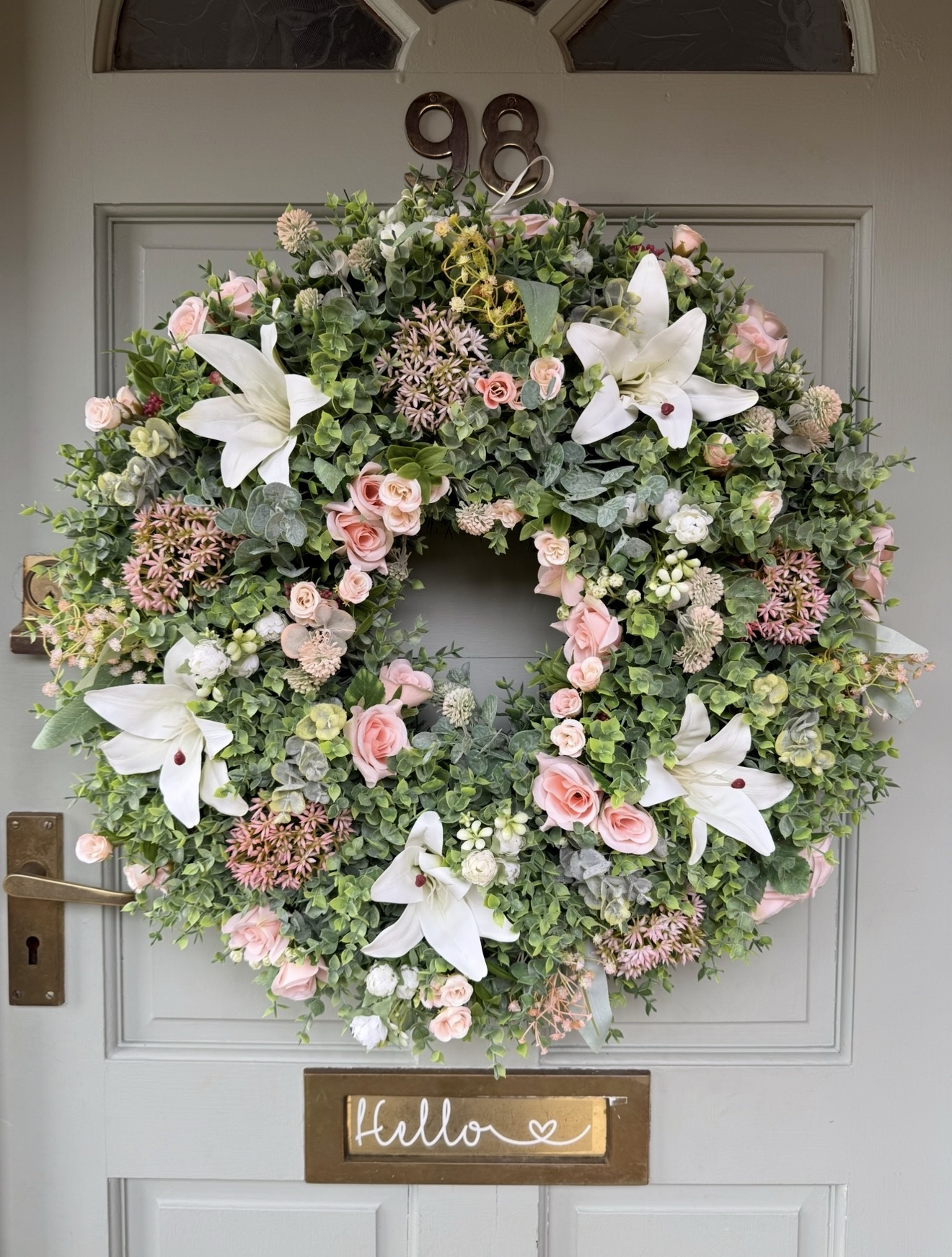 An extra large faux Spring style wreath, approximately 65cm diameter.
