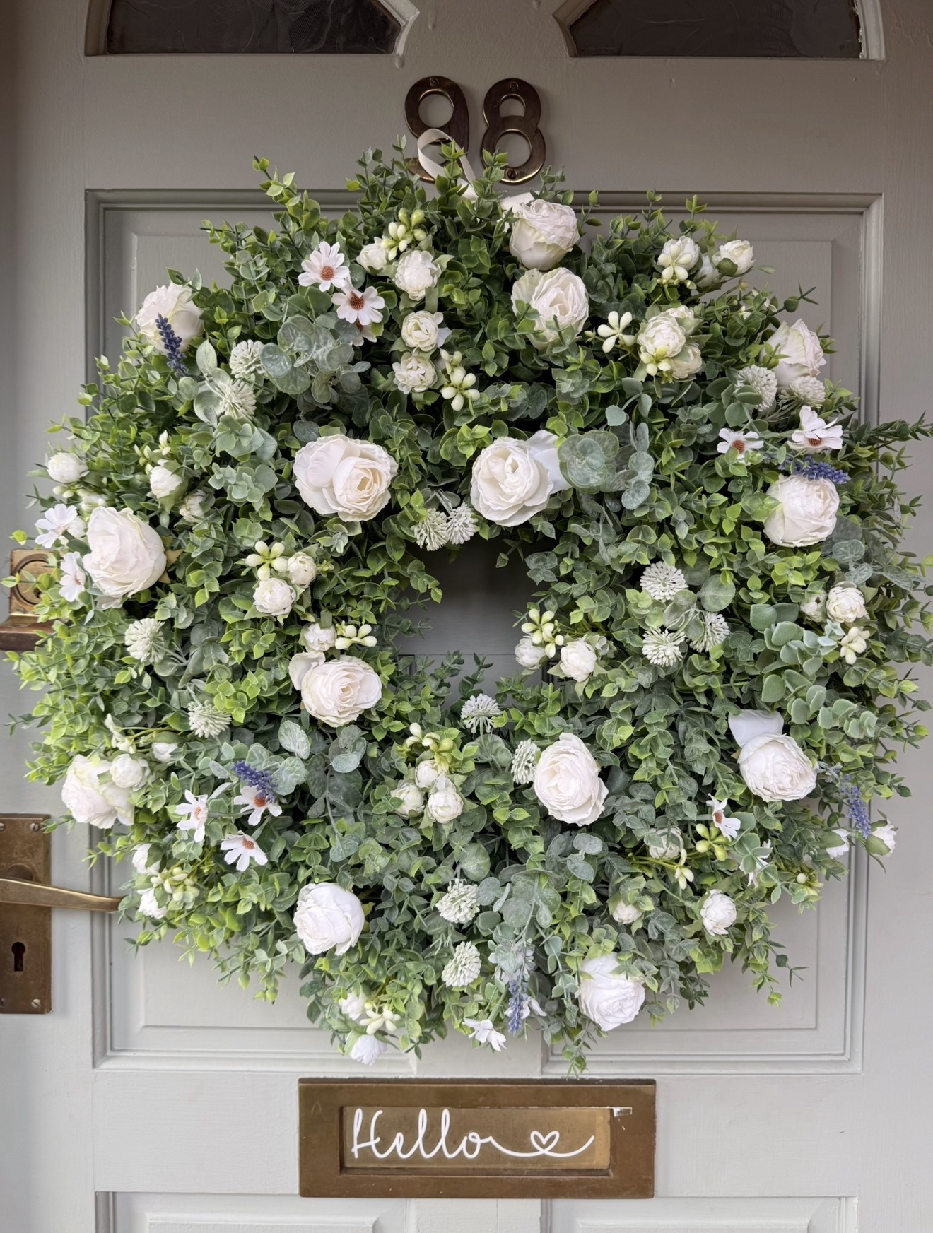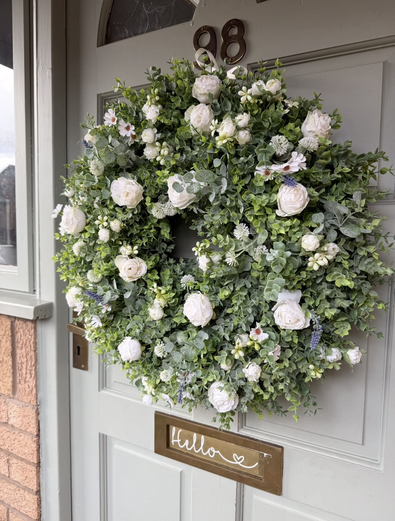 An extra large faux Spring style wreath, approximately 65cm diameter.