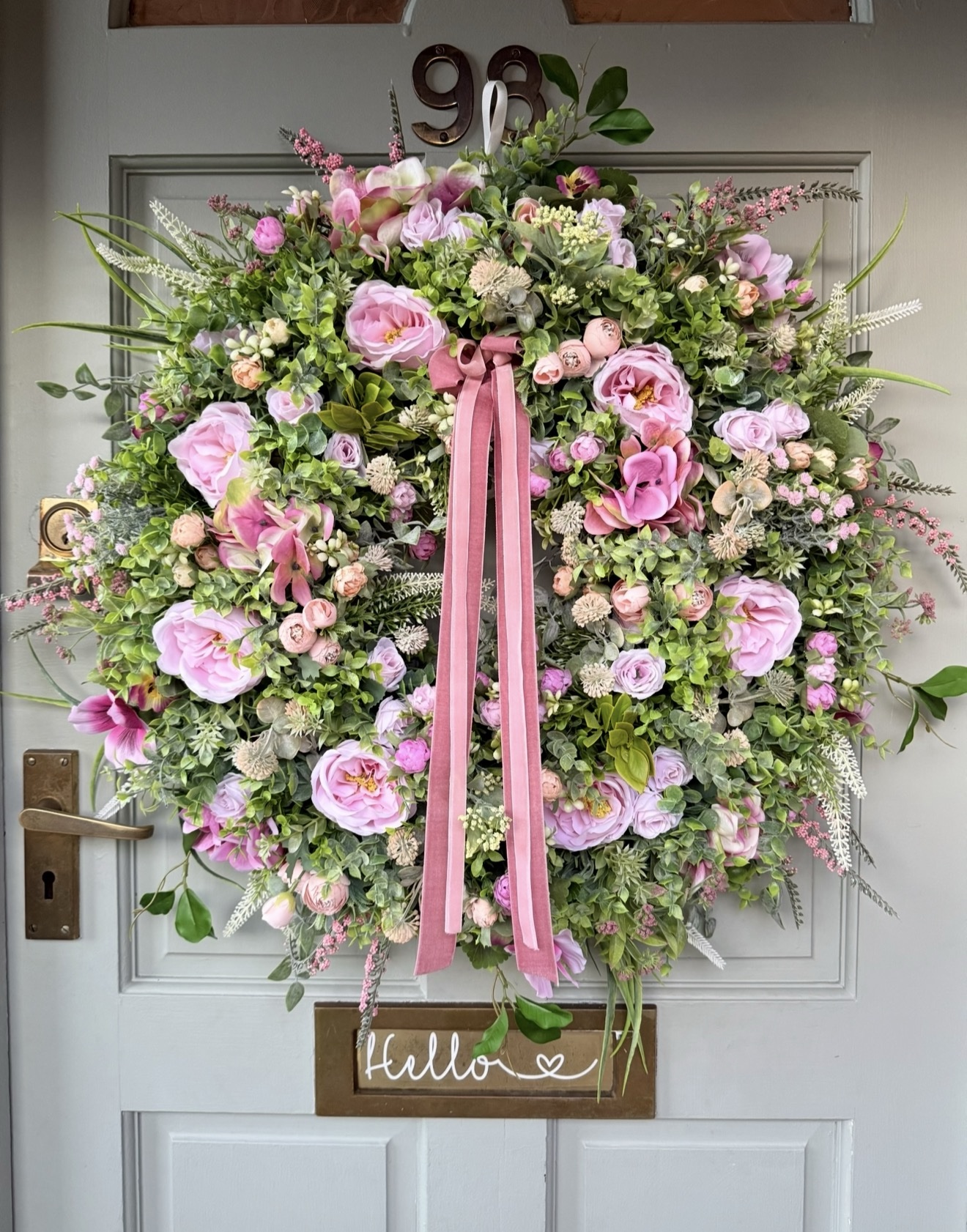 A large faux Spring style wreath, approximately 65cm diameter.