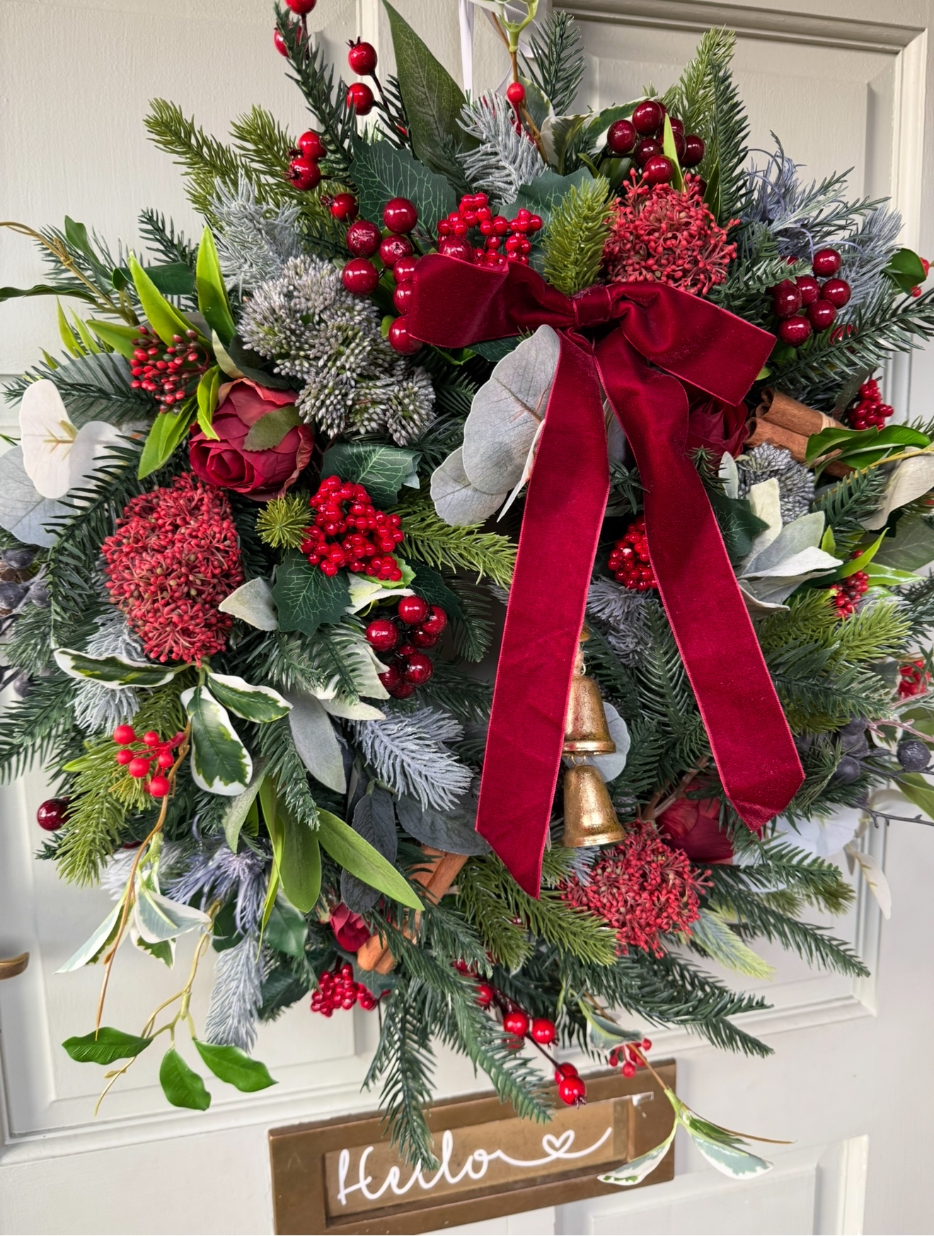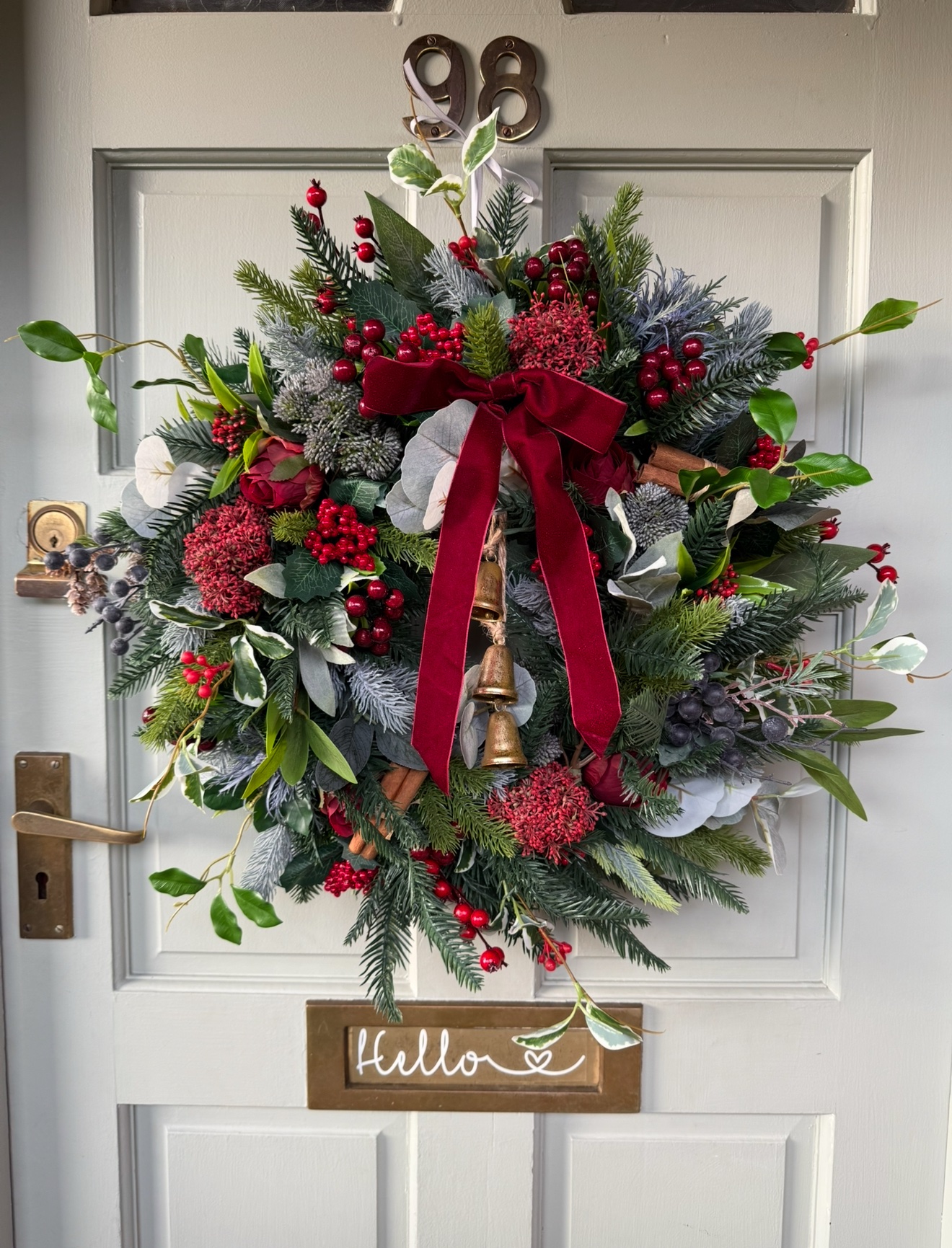 A beautiful traditional faux Christmas wreath. ( some items on the wreath shown may slightly differ depending on stock availability)