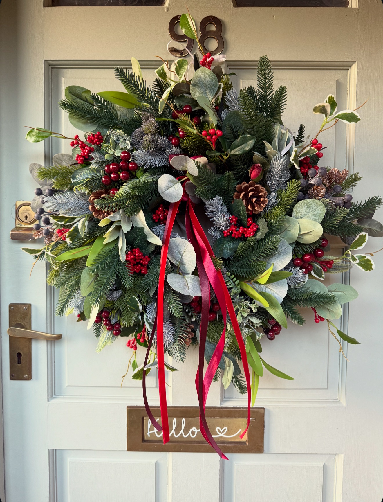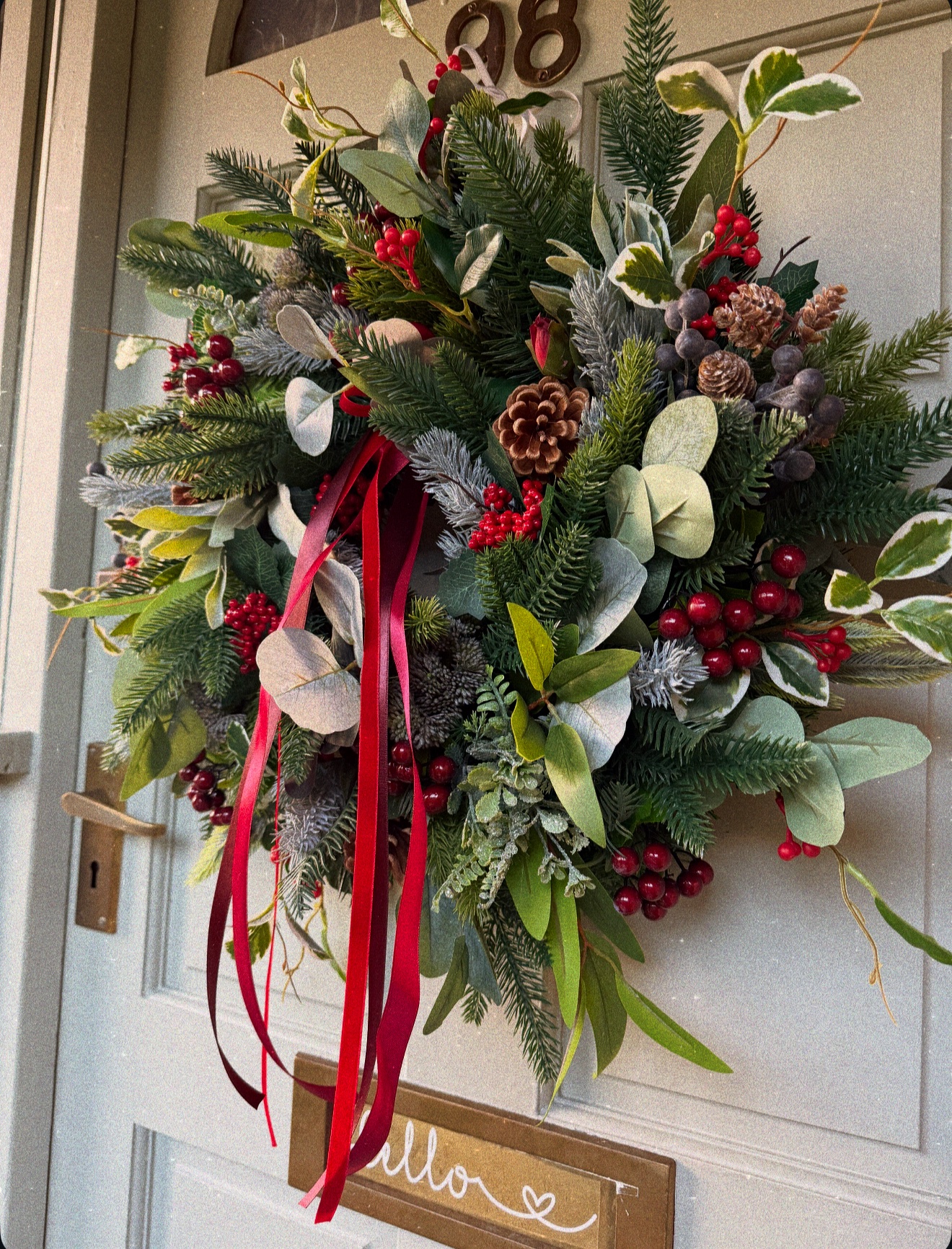 A beautiful traditional faux Christmas Wreath.